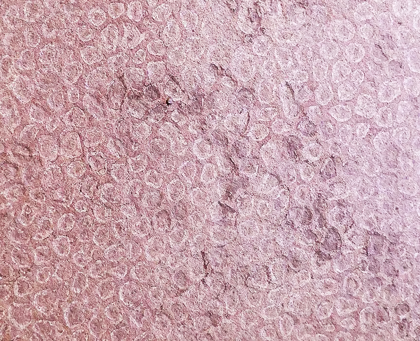 La SC-10 Red Shell est une feuille de pierre en marbre naturel à la teinte pourpre vibrante, marquée par des structures circulaires prononcées aux nuances blanc-gris.