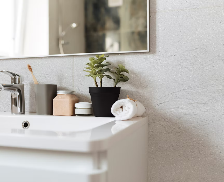 Que ce soit dans une salle de bain, une cuisine, un salon ou un espace commercial, cette feuille de pierre illumine l’espace et renforce la sensation de pureté et de légèreté.