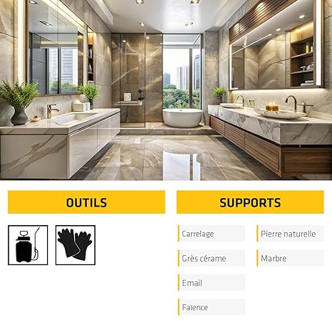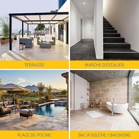 Il crée une micro-texture invisible qui améliore fortement l’adhérence, réduisant les risques de glissade sur terrasses, marches, piscines, cuisines ou halls d’entrée.